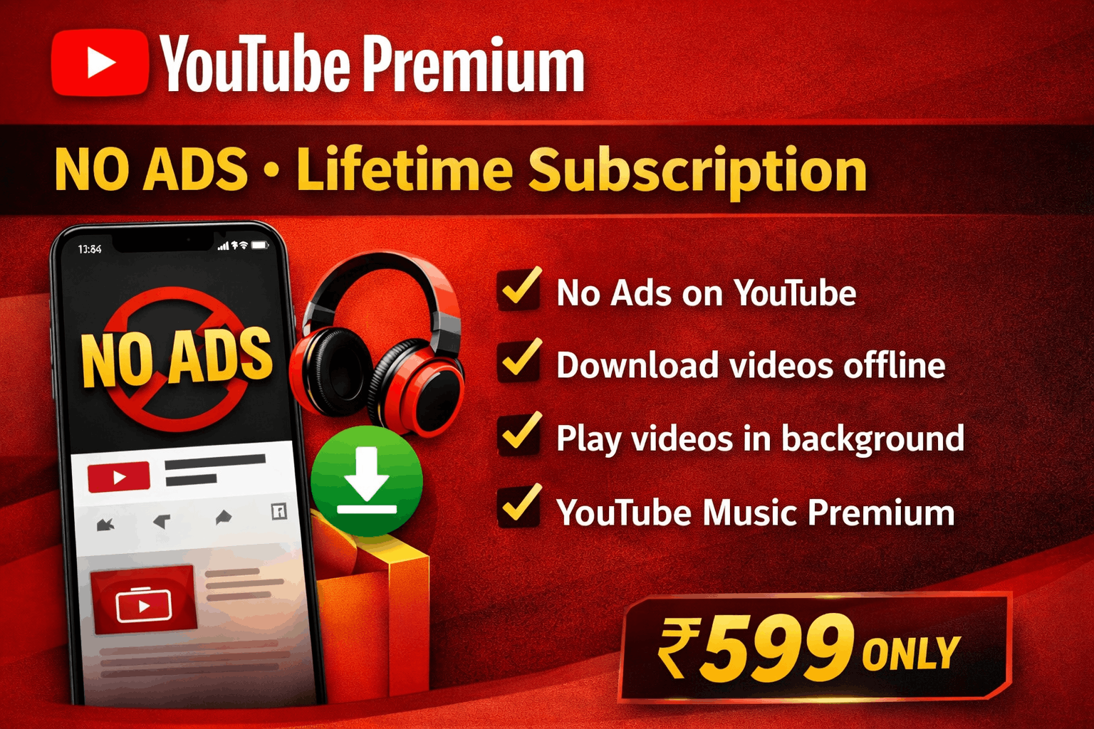 • No Ads on YouTube (Ads nahi aayenge)